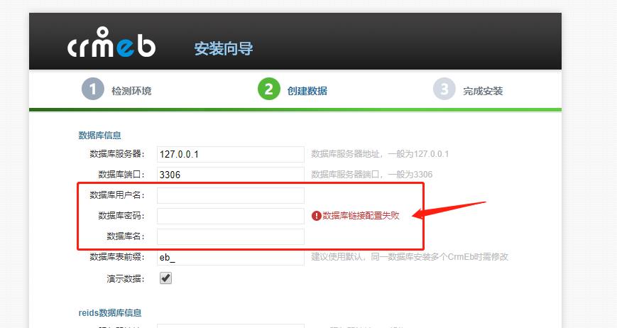 3..填写数据库用户名、数据库名、数据库密码。