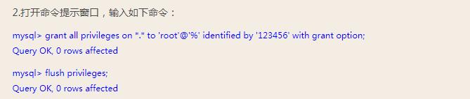 grant all privileges on *.* to 'root'@'%' identified by '密码' with grant option;